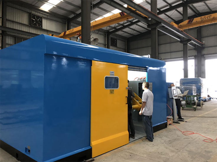 4、成缆主机护罩全封闭式,内部采用多孔网板,内采用镶嵌消音棉,有效降低了设备运行时产生的噪音;