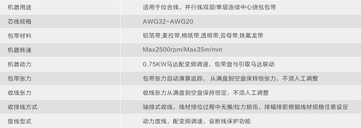 设备用途:适用于绞合线,并行线双层/单层连续中心绕包包带。